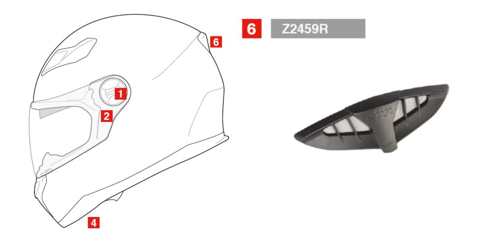 Detailní popis Z2459R zadní ventilace pro přilby GIVI 50.4 Sniper