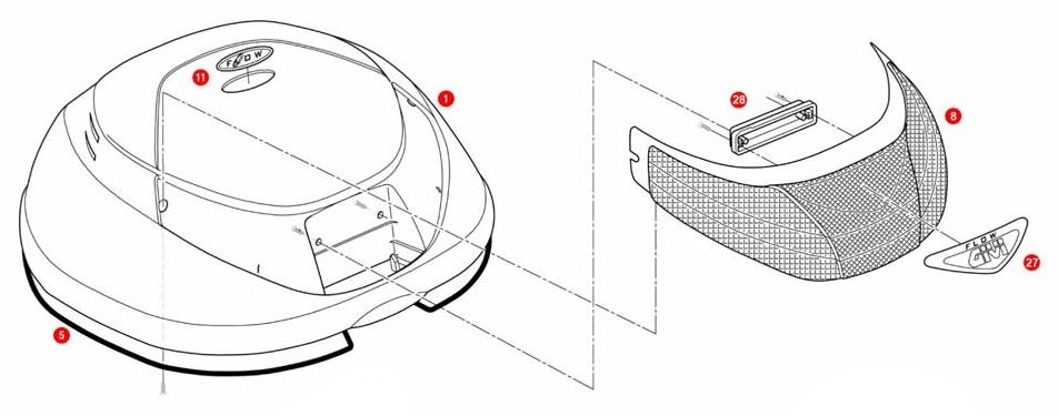 Detailní popis Z350CNM víko kufru E 350 Flow kompletní černé (víko s krytem a odrazkami)