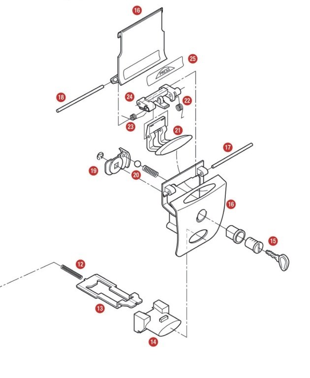 Detailní popis Z640R otočný díl zámku kufru E260/E350/E450/E470/V46 (plast)