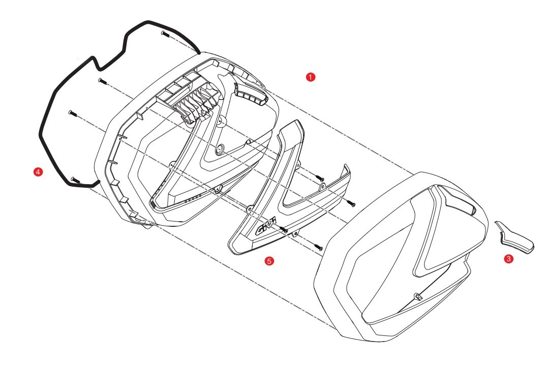 Detailní popis ZV37CNMSX horní víko kufru V37N kompletní, levé, černé, s červeným plexi