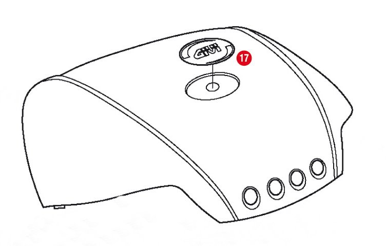 Originálně označený díl pro opravu, výměnu nebo doplnění kompatibilních kufrů GIVI. logo oválné na horní víko kufru GIVI V46/V35 - pozice 17.